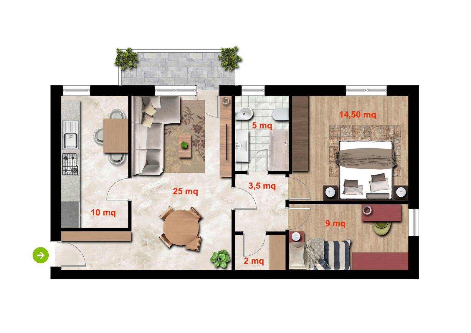 L' appartamento presenta riscaldamento autonomo, aria condizionata, porta blindata, e viene consegnato completamente arredato con cucina completa, lavastoviglie e lavatrice.