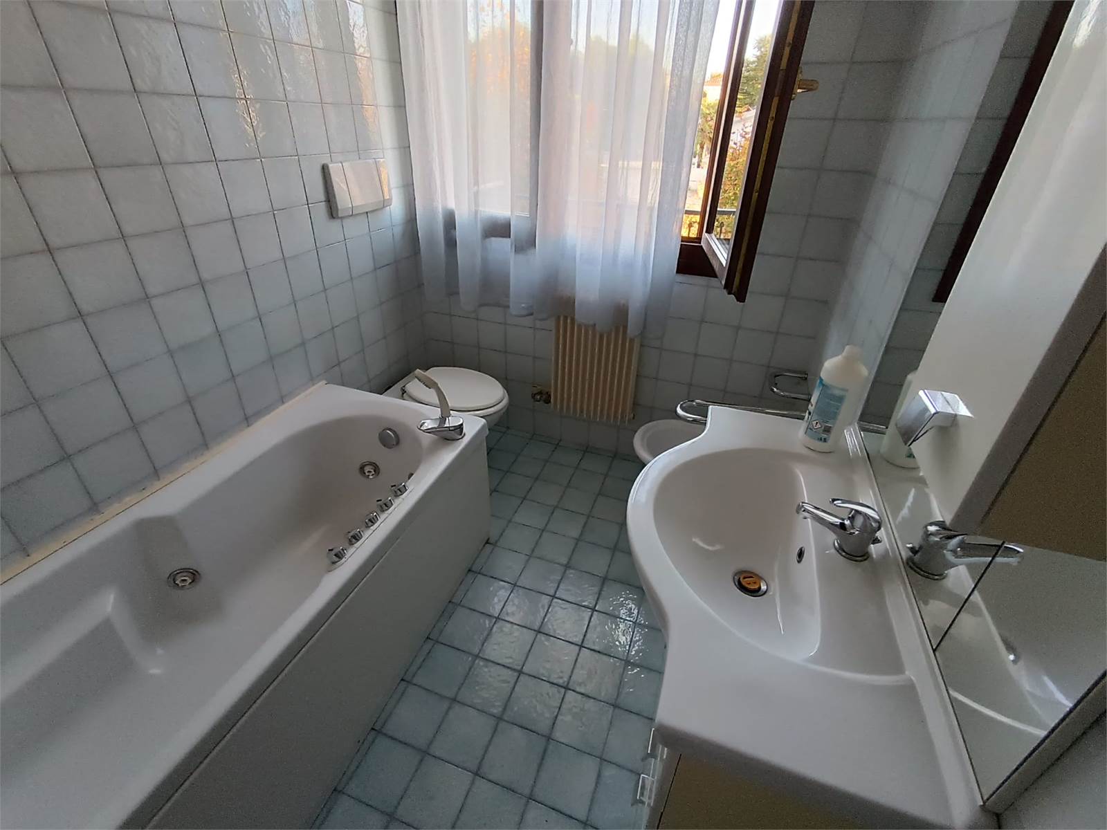 Proponiamo Porzione di casa indipendente in zona centralissima a Mogliano Veneto, comoda a tutti i servizi, e composta da ingresso indipendente, soggiorno, cucina abitabile, bagno al piano terra, ripostiglio, tre camere, secondo bagno con vasca idromassaggio, giardino di proprietà completamente piastrellato e posto auto interno.