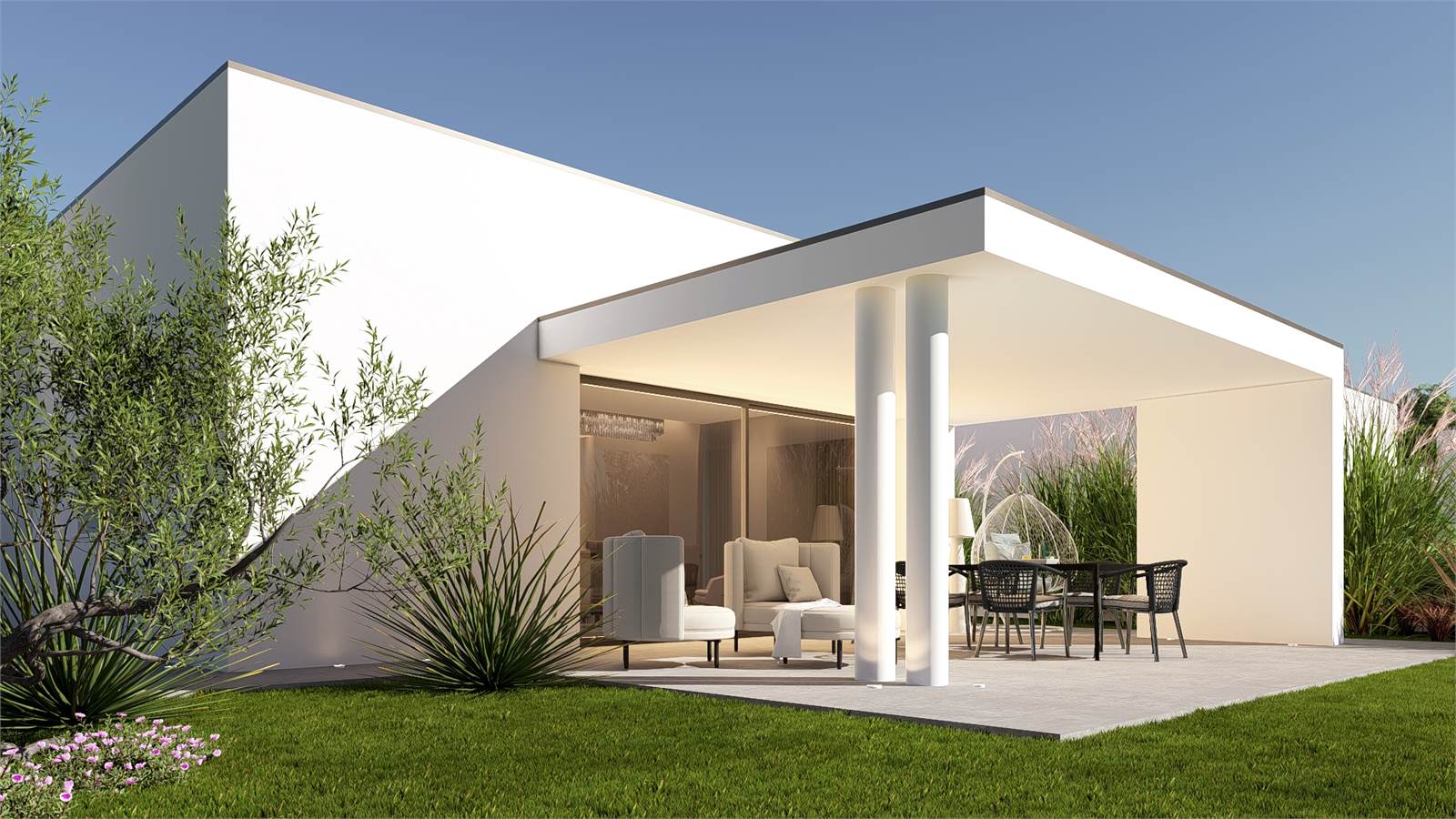 La Villa “Canareggio”, si distingue per una grande particolarità molto richiesta ed apprezzata sul mercato: è disposta infatti unicamente sul piano terra e l’intero sviluppo è distribuito su una pianta di 180 mq ca. La grande zona living, di oltre 70 mq, è l’elemento caratterizzante di questa esclusiva dimora, che si affaccia attraverso le grandi pareti di vetro perimetrali sul grande porticato esterno e sul parco privato della villa. La zona notte offre una grande camera master dotata di bagno privato e due camere matrimoniali con un bagno a servizio. Completano la proprietà, un bagno ospiti adiacente alla zona giorno, una lavanderia/locale tecnico e un grande box auto doppio. Ampia la scelta delle finiture interne e dei materiali, è inoltre possibile realizzare una bellissima piscina.